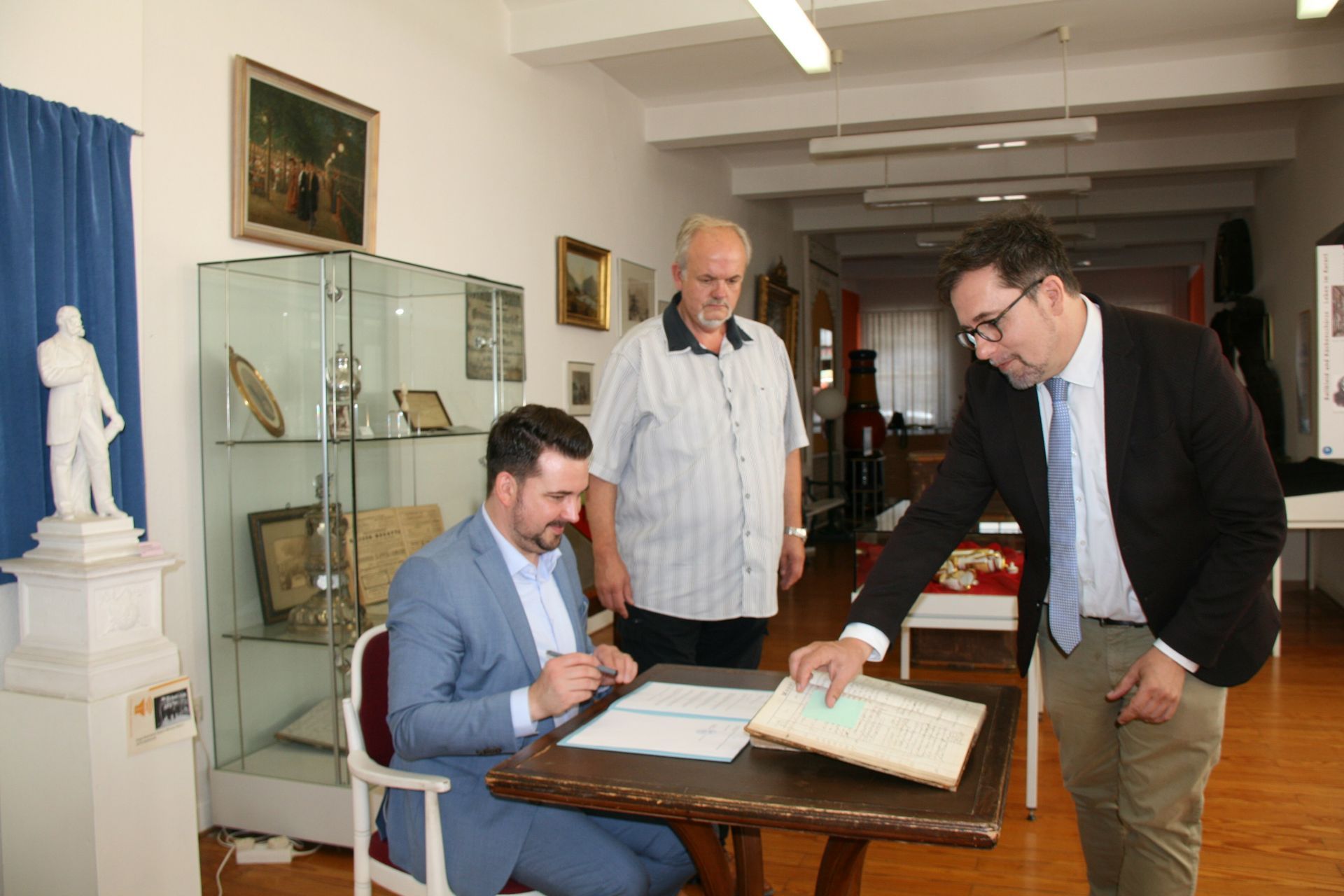 Die Freude war groß bei diesem Termin im Bad Emser Stadtmuseum. Was Prof. Dr. Kilian Heck hier auf den Tisch legte, ist ein neuer Schatz für das Stadtarchiv. „Eine tolle Schenkung“, bedankte sich Stadtbürgermeister Oliver Krügel bei der Unterzeichnung des Schenkungsvertrages. Große Augen machte auch Steffen Schütze, Leiter des Verbandsgemeindearchives, der das einmalige Gästebuch der königlichen Kurhausverwaltung Ems vom 1. April 1881 bis Ende 1886 jetzt unter seine Fittiche nimmt.