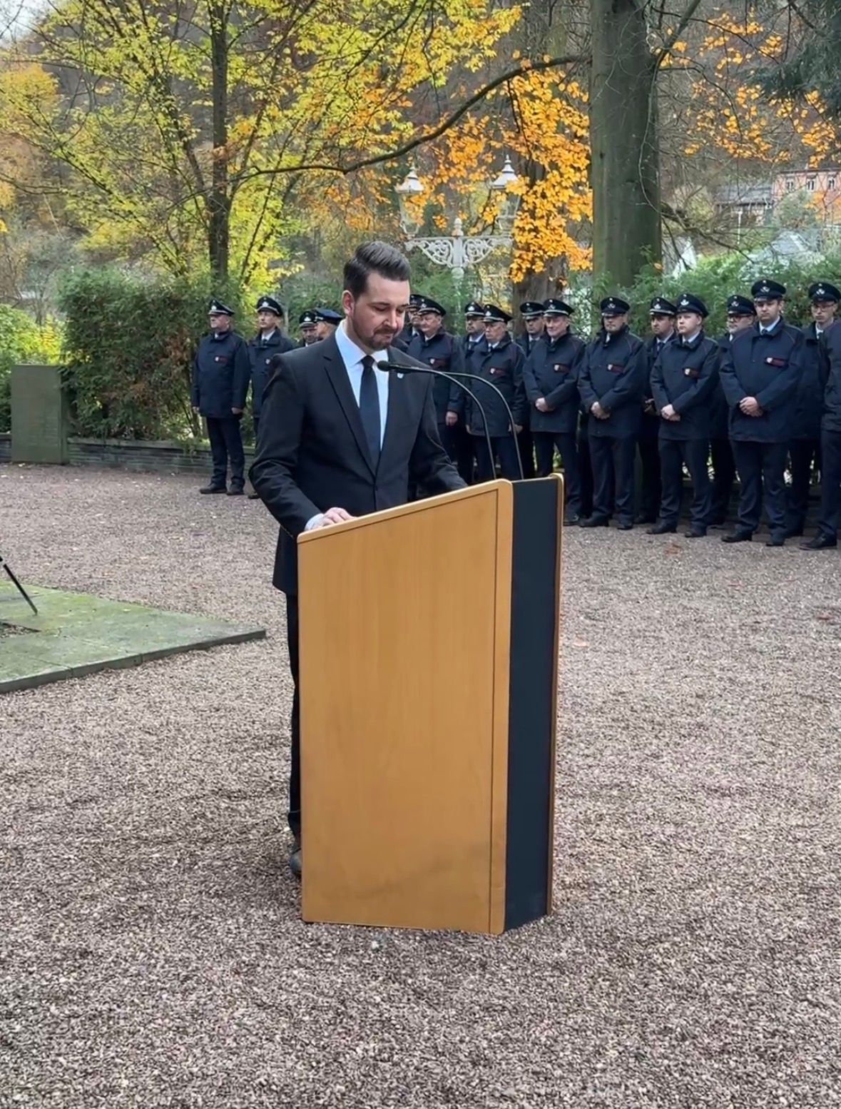 Bad Ems. – Mit einer eindrucksvollen und würdevollen Gedenkfeier hat die Stadt Bad Ems am Sonntag den Volkstrauertag begangen. Zahlreiche Bürgerinnen und Bürger, Vertreterinnen und Vertreter der kommunalen Gremien sowie Abordnungen örtlicher Vereine waren der Einladung gefolgt, um der Opfer von Krieg, Gewaltherrschaft und Terror zu gedenken. Die Ansprache hielt Stadtbürgermeister Oliver Krügel, der in bewegenden Worten an die Bedeutung des Gedenktages erinnerte. „Der Volkstrauertag mahnt uns, Verantwortung zu übernehmen – für Frieden, für Demokratie und für ein respektvolles Miteinander“, sagte Krügel. Er betonte, dass Erinnerung nicht Stillstand bedeute, sondern Auftrag: „Gedenken heißt, sich bewusst zu machen, wie zerbrechlich Frieden ist – und wie wichtig unser tägliches Handeln für eine freie, humane Gesellschaft bleibt.“ Einen weiteren Impuls gab Dekanin Kerstin Janot, die die Perspektive von Trost, Verantwortung und Versöhnung hervorhob. Sie erinnerte daran, dass Frieden immer im Kleinen beginne und dass jede Generation neu gefordert sei, ihn zu schützen. Zu den Gästen der Gedenkfeier gehörten auch Landrat Jörg Denninghoff, Uwe Bruchhäuser, Bürgermeister der Verbandsgemeinde Bad Ems–Nassau, sowie zahlreiche Stadträtinnen und Stadträte und Mitglieder des Verbandsgemeinderates, die durch ihre Teilnahme die Bedeutung des gemeinsamen Erinnerns unterstrichen. Musikalisch umrahmt wurde die Veranstaltung vom Frauenchor Cosima, der mit ausgewählten Liedstücken eine besonders würdevolle Atmosphäre schuf und der Gedenkstunde einen feierlichen Rahmen verlieh. Auch die Freiwillige Feuerwehr Bad Ems war wieder mit großer Mannstärke vertreten und setzte damit ein sichtbares Zeichen des Zusammenhalts und der Verbundenheit in der Stadtgemeinschaft. Der städtische Bauhof sorgte wie gewohnt für den professionellen Auf- und Abbau und trug damit wesentlich zum reibungslosen Ablauf der Veranstaltung bei. Stadtbürgermeister Krügel dankte allen Mitwirkenden ausdrücklich: „Es ist ein starkes Zeichen für unsere Stadt, wenn wir an einem solchen Tag gemeinsam innehalten und uns unserer Verantwortung bewusstwerden. Bad Ems hat heute gezeigt, dass das Erinnern lebendig ist.“ Die Gedenkstunde endete mit der Kranzniederlegung am Ehrenmal und einem stillen Moment des gemeinsamen Erinnerns.
