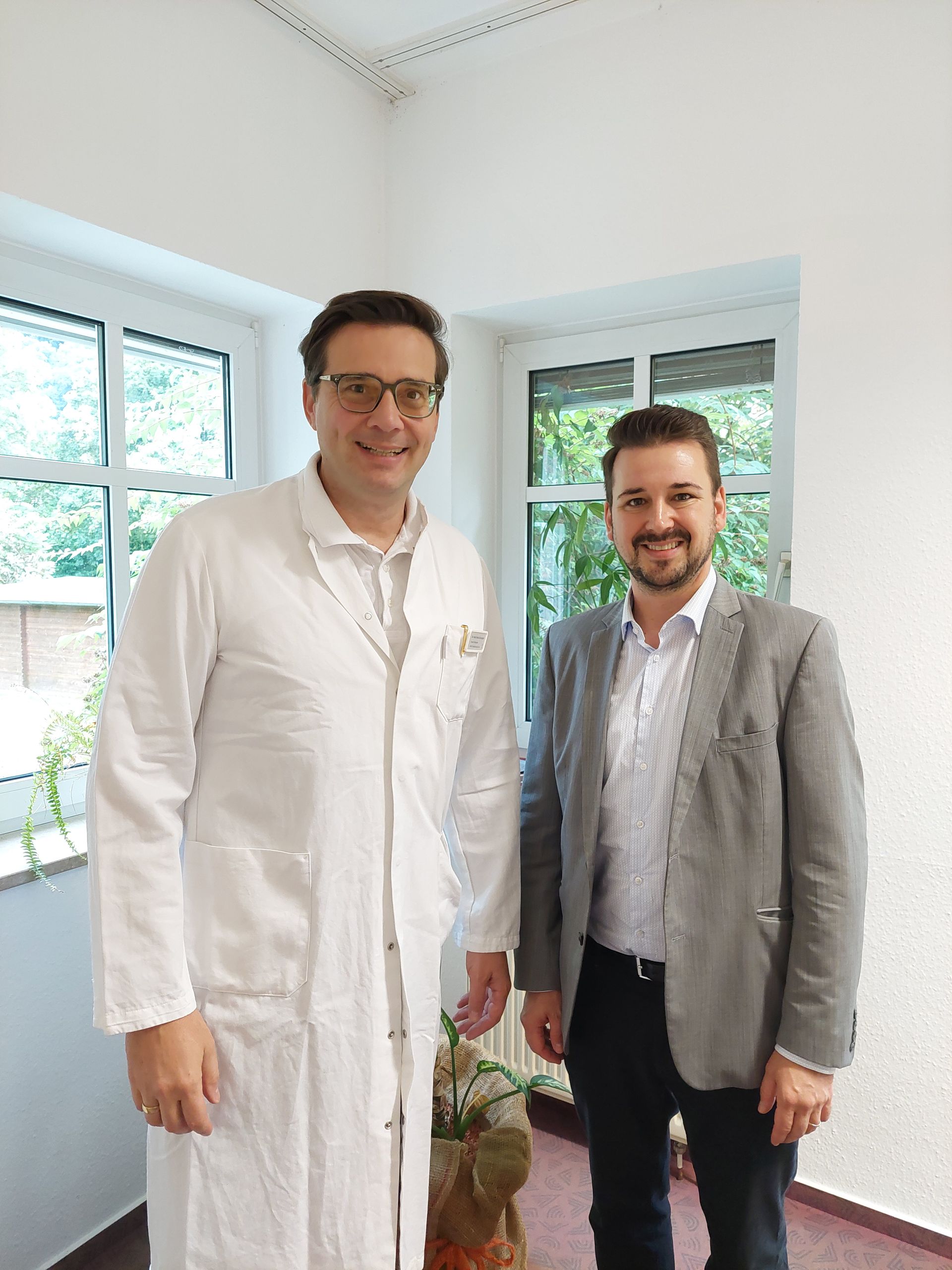 Bad Ems. Stadtbürgermeister Oliver Krügel besuchte die VAMED Rehaklinik Bad Ems, um sich vor Ort über die medizinischen Angebote und die Entwicklung der ambulanten Badekuren zu informieren. Empfangen wurde er von Dr. med. Heiko Schneider, Ärztlicher Direktor und Chefarzt der Orthopädie, der seit 2017 die Fachabteilung leitet. Dr. Schneider hat im März 2024 die Zusatzbezeichnungen Physikalische Therapie, Balneologie und Medizinische Klimatologie erworben und ist seit August 2024 als Kur- und Badearzt der Stadt Bad Ems für alle Kassen sowie privatärztlich als Orthopäde zugelassen. Seine Orthopädische Praxis befindet sich in den Räumlichkeiten der VAMED Rehaklinik und bietet aufgrund der engen Anbindung an diese ein außergewöhnlich breites, multimodales Spektrum konservativer Behandlungsmöglichkeiten bei Erkrankungen des Bewegungsapparats. „Mit der Zulassung als Kur- und Badearzt können wir das medizinische Angebot in Bad Ems weiter ausbauen und unseren Gästen wie auch Bürgerinnen und Bürgern eine wohnortnahe, qualifizierte Betreuung bieten“, betont Dr. Schneider. „In enger Anbindung an die Rehaklinik stehen mir vielfältige Therapiemöglichkeiten wie Physiotherapie, Bewegungstherapie, medizinisches Training, Stabilisationstraining und Anwendungen im Bewegungsbad zur Verfügung.“ Ein besonderer Schwerpunkt liegt auf der ambulanten Badekur, die seit der Reform der Vorsorgeleistungen wieder stärker nachgefragt wird. Sie dient der Gesundheitsvorsorge und kann von den Krankenkassen bezuschusst werden. Während einer ambulanten Kur in Bad Ems werden die Anwendungen durch den Badearzt verordnet und der Kurgast regelmäßig ärztlich betreut. Stadtbürgermeister Oliver Krügel zeigte sich beeindruckt vom breiten Leistungsspektrum und der guten Vernetzung innerhalb der Rehaklinik: „Die VAMED Rehaklinik und die ärztliche Tätigkeit von Dr. Schneider tragen dazu bei, dass Bad Ems seine Rolle als Gesundheits- und Kurstadt auch in der modernen Medizin weiter festigt. Die Kombination aus medizinischer Kompetenz, hochwertigen Heilmitteln und individueller Betreuung macht Bad Ems zu einem Ort, an dem Prävention, Heilung und Erholung eng zusammengehören.“ Mit Angeboten wie der ambulanten Badekur, der neu eröffneten Kur- und Badearzt-Praxis und der Orthopädischen Privatpraxis von Dr. Schneider wird der Anspruch der Stadt unterstrichen, den Gesundheitsstandort Bad Ems stetig weiterzuentwickeln und an die Anforderungen der Zeit anzupassen.