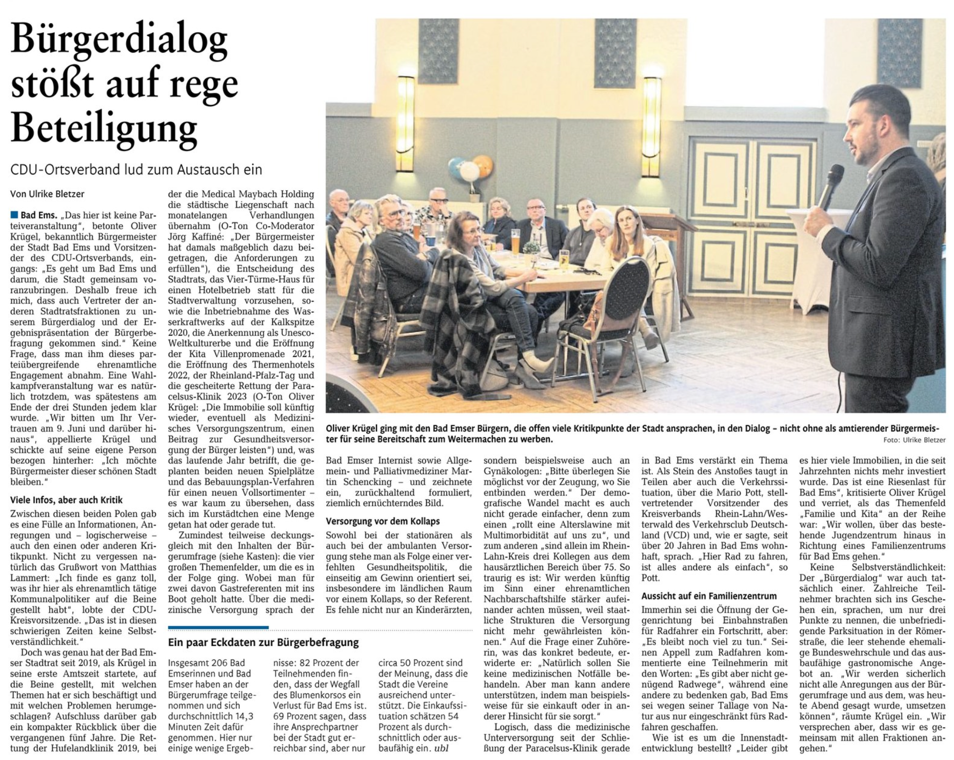 Quelle: Rhein-Lahn-Zeitung Bad Ems, Lokales, Bürgerdialog stößt auf rege Beteiligung, 29. April 2024