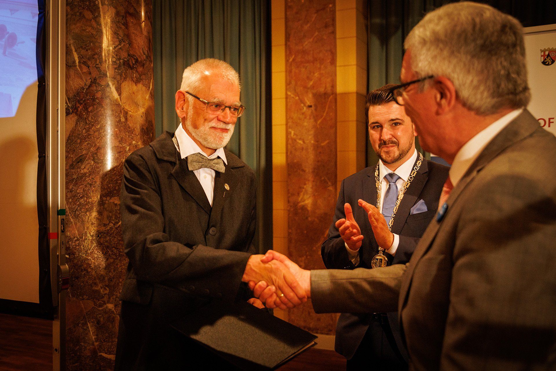 Unter anderem für die Wegbereitung zur Aufnahme in die Liste des Welterbes wurde in Anerkennung langjähriger ehrenamtlicher Tätigkeiten im Dienste der Gemeinschaft Dr. Hans-Jürgen Sarholz vom Innenminister die Ehrennadel des Landes Rheinland-Pfalz verliehen.