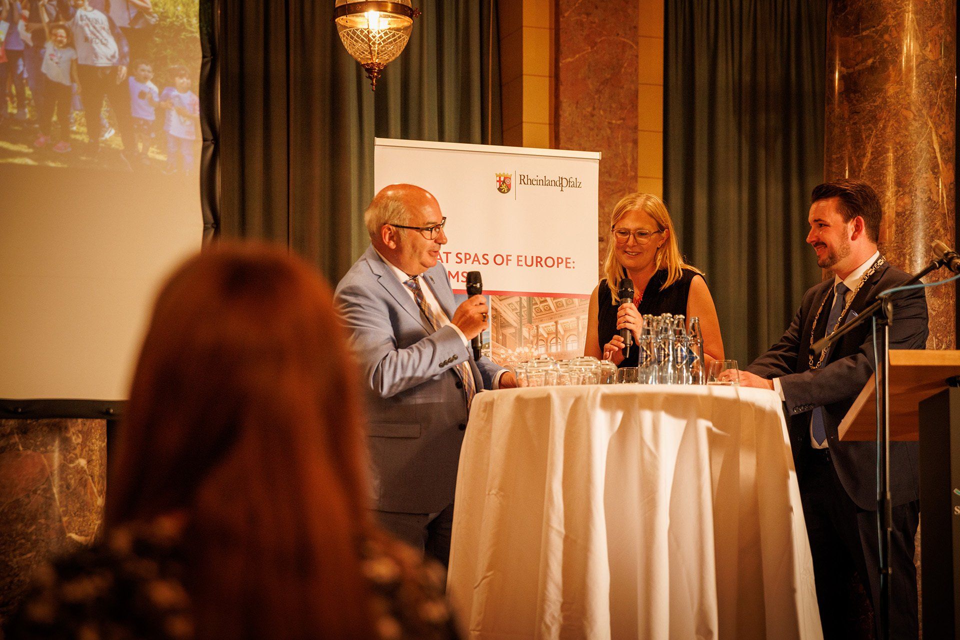 „Bad Ems ist eine Teilstätte in einem europäischen Team – Great Spa Towns of Europe“, erinnerte Julia Palotas die Gäste. Die Anerkennung bringt die Pflicht zur Bewahrung und Vermittlung mit sich. Die Kurarchitektur und Kurlandschaft gilt es zu bewahren. Dazu muss vor Ort die Fachexpertise noch enger zusammengebracht werden. „Wir wollen Lust darauf mache, das Welterbe zu erkunden und unsere Besucher*innen willkommen heißen und wir müssen uns auch die Frage stellen, wie wir die junge Generation ansprechen und die Zukunftschancen erkennen“, sagte Julia Palotas.