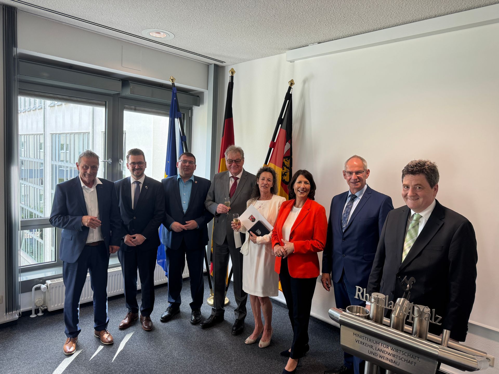 Stadtbürgermeister Oliver Krügel reiste persönlich nach Mainz ins Wirtschaftsministerium, um bei der Verleihung der Wirtschaftsmedaille der Wirtschaftsministerin an Tanja Stephan und Bernd Höhne dabei zu sein: